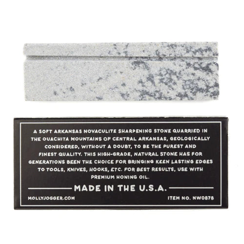 - Soft Arkansas Novaculite stone specially grooved to keep your fishing hooks sharper than new.