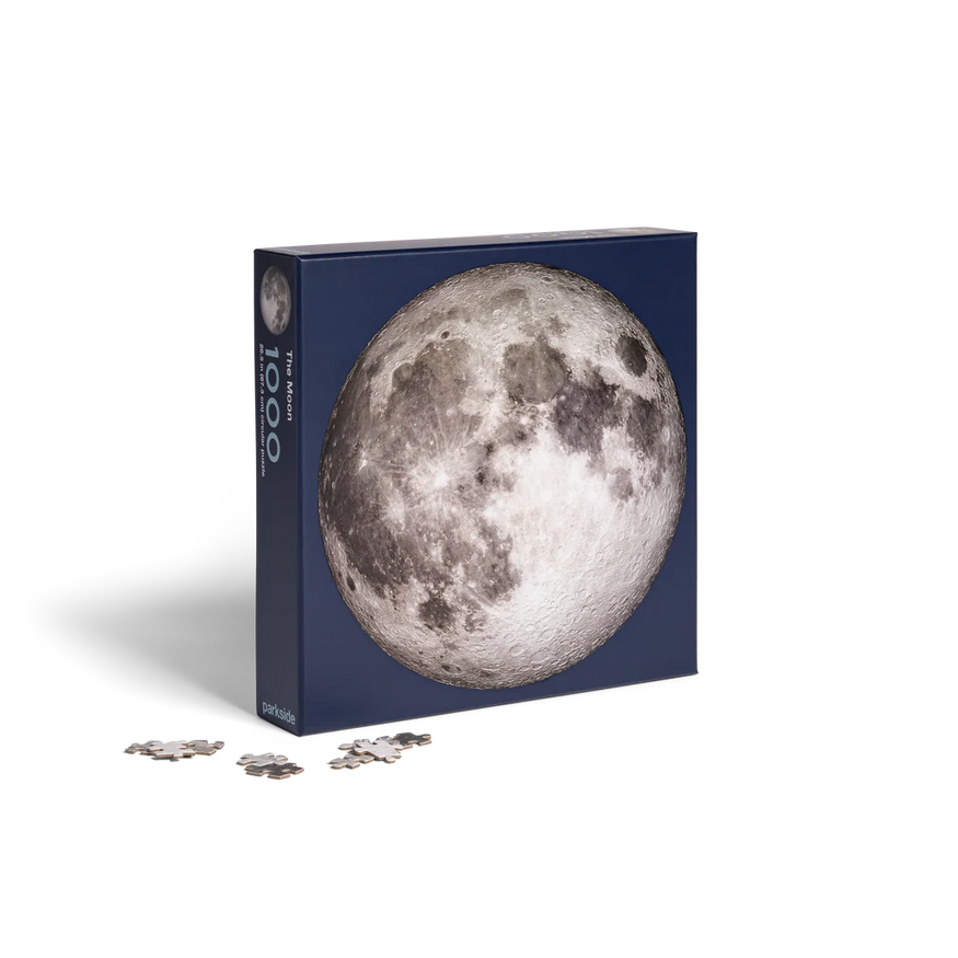 This 1000 piece, 26.5" (67cm) circular puzzle features the near side of the Moon in incredible detail. The image, courtesy of NASA, is the clearest image of the Moon to date and shows even the tiniest of craters in stunning clarity.