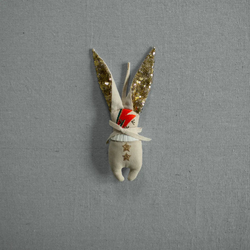 David Bowie-inspired Bunny! Enchant year-round with this nostalgic item as a gift topper, holiday ornament, or simply whimsical decor.