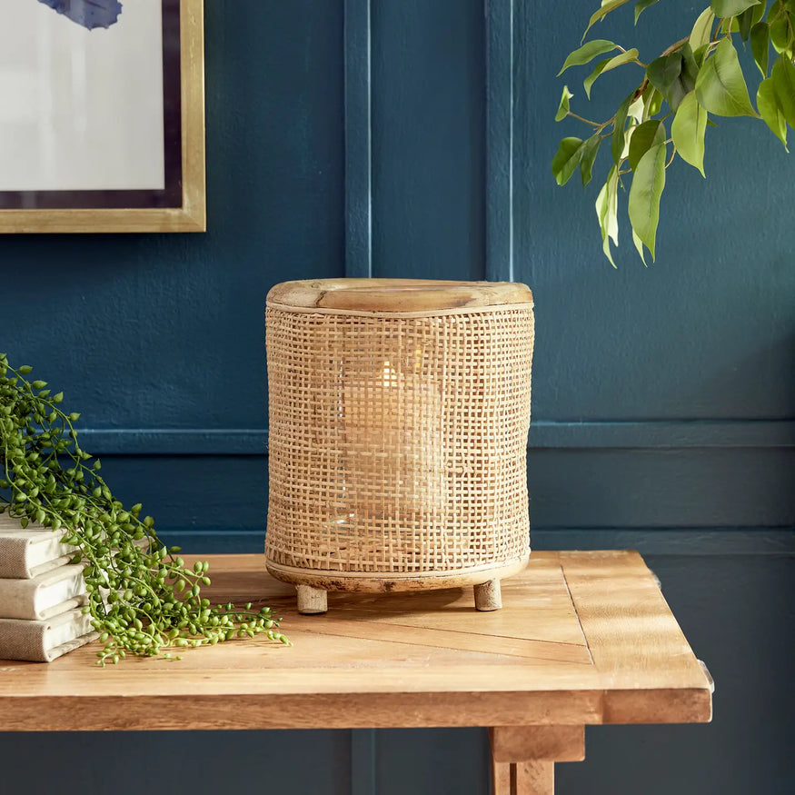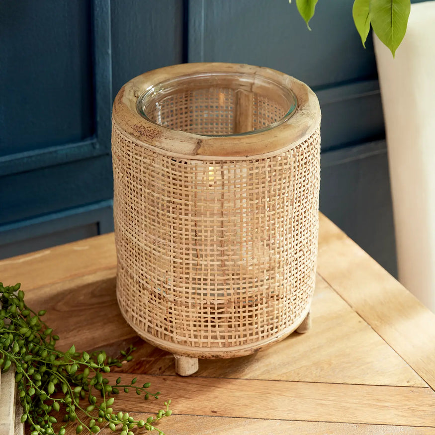 The tightly woven design and natural tones of the rattan make this hurricane stand out. Not to mention the little footed detail. Complete with a closed bottom glass insert, it may also be used as a vase. How sweet!
