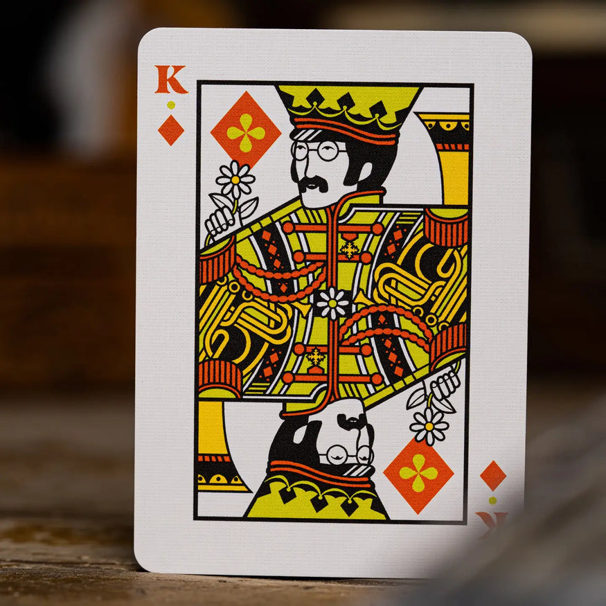 Premium playing cards produced in collaboration with The Beatles. Dressed in the style of the iconic Sgt. Pepper’s Lonely Hearts Club Band, the playing card boxes perfectly represent each marching band uniform worn by the members of the band: John Lennon, Paul McCartney, George Harrison, and Ringo Starr.